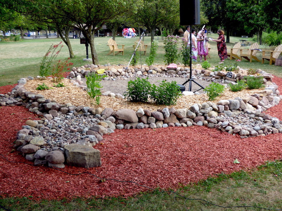 The lower park (Fourth Street) site was created over the course of June and July. It is designed in the sacred shape of the Turtle, and will serve as a place for people from all Four Quadrants of the Medicine Wheel to come in unity and friendship.