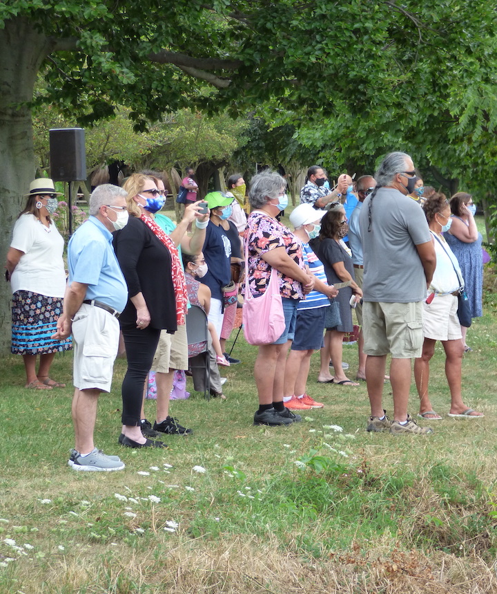 Smith read remarks from Burnett. She was quoted as saying, “Today we have much to celebrate. We celebrate the significant achievements and contributions by indigenous peoples. We celebrate our diverse, deep-rooted culture, traditions and heritage. We celebrate walking together as indigenous peoples. We celebrate the strides, which are helping pave the way to create a cross-cultural society that is built on respect, integrity and friendship. We celebrate us. And today we celebrate the inaugural unveiling of the Native American Peace Garden at Artpark.”