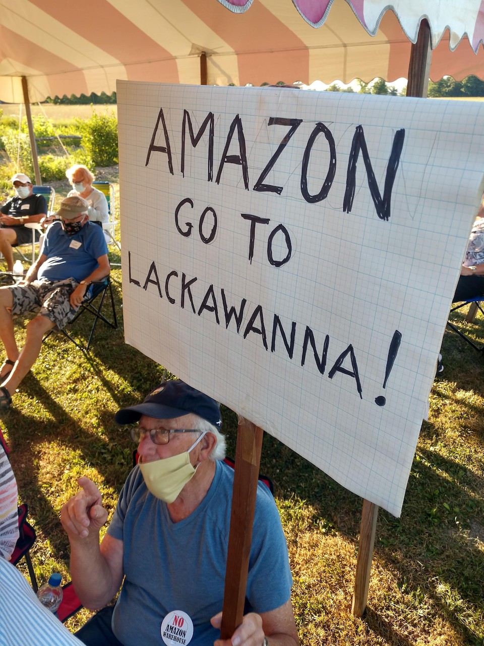 Rayhill encouraged all of the anti-Amazon supporters to meet at Town Hall with their lawn signs and voices at 5 p.m. to meet the town supervisor and board members as they enter the building. She then encouraged rally members to go home and join the workshop meeting at 6 on YouTube and, rather than have their face on the screen, put their sign up.