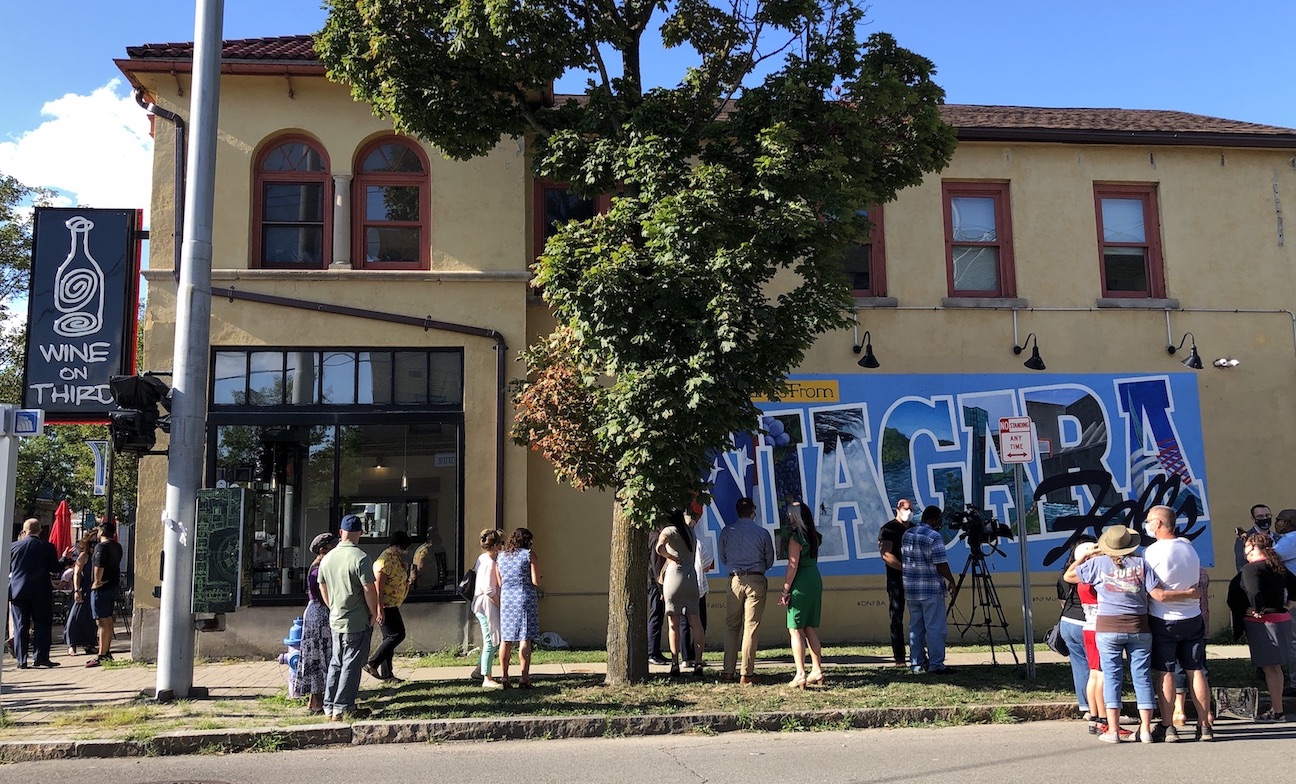 The Downtown Niagara Falls Business Association hosted an official unveiling for the new “Greetings From Niagara Falls” public mural outside of Wine on Third.