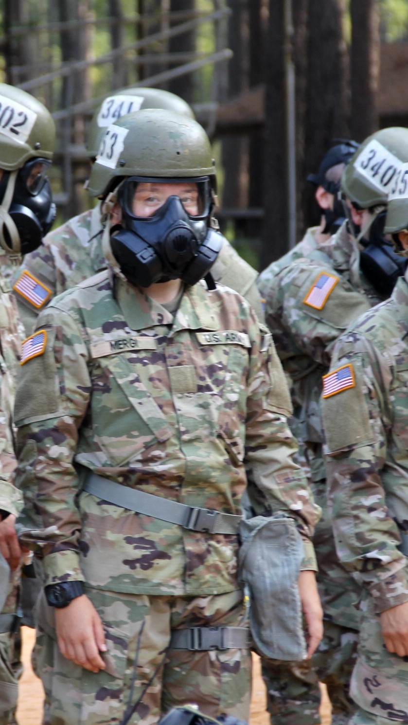 Hannah Mergi participates in gas chamber drills as part of basic training at Fort Benning. (Photo courtesy of Melissa Fincher Mergi)