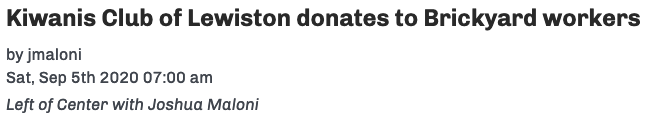 The Kiwanis Club of Lewiston has been without its weekly meeting space since the end of May – when a fire tore through the Brickyard Brewing Company’s second floor, causing residual damage to the Kiwanians’ home-away-from-home, the Brickyard Pub & BBQ.