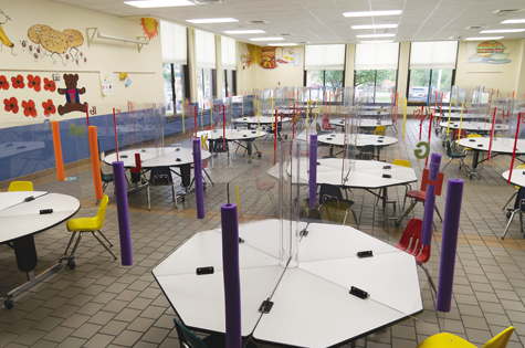 The tables in the cafeteria at Sidway Elementary School were undated with protective equipment by head custodian Kevin Astridge, Principal Denise Dunbar said.