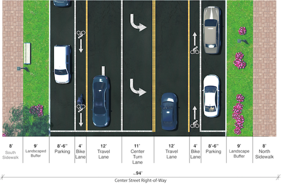 As Welch explained, however, “The numbers didn't add up, because we didn't have enough room to do 4 feet on each side – that would be back to the 8 feet again,” which was rejected both by her board and the business owners. “So, it just didn't work on Center Street.”