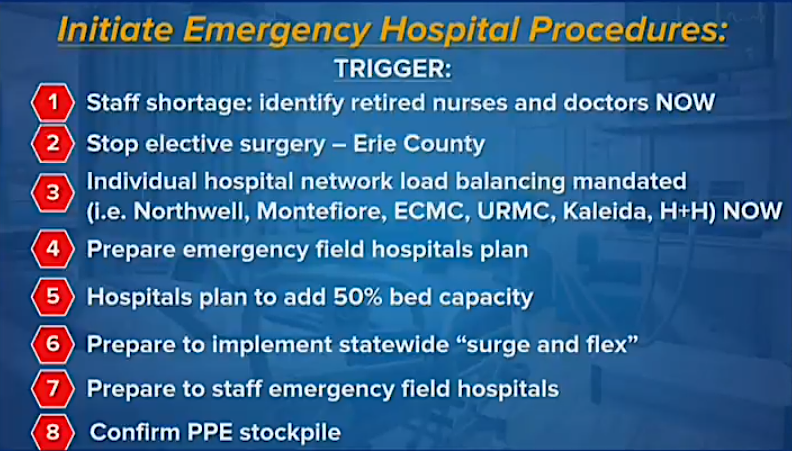√ Hospital systems in Erie County must suspend elective surgeries to create new bed capacity for COVID patients;
