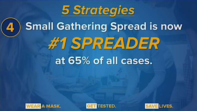 Small gatherings have now been identified as the No. 1 spreader of COVID-19, with at least 65% of all cases coming from these settings.