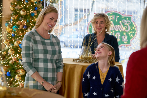 Amanda Schull, Nan Fewchuck and Averie Peters in “Project Christmas Wish” on Hallmark Movies & Mysteries. (Photo by Steve Ackerman/©2020 Crown Media United States LLC)