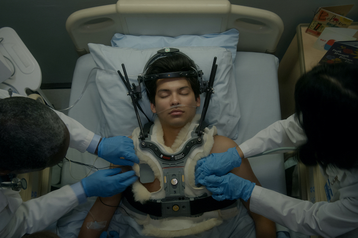 Miguel ends up in a hospital following the school brawl, much to the chagrin of his mother, Carmen (Vanessa Rubio), and grandmother, Rosa (Rose Bianco). (Photos courtesy of Netflix © 2020)