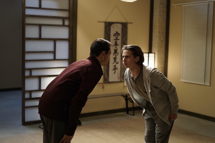 At the same time, Johnny’s estranged son, Robby (Tanner Buchanan), takes a job at LaRusso Luxury Motors. Though initially there to make trouble, he soon finds himself under Daniel’s wing. Training alongside Sam in the Miyagi-Do technique, Robby finds self-discipline and abandons his delinquent tendencies.