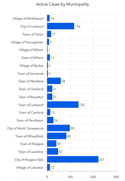 As of Tuesday, Wydysh noted there had been a total of 14,162 positive COVID-19 cases in Niagara County, with 13,007 residents listed as recovered. As of Wednesday, there were 941 active cases, with 22 people hospitalized.