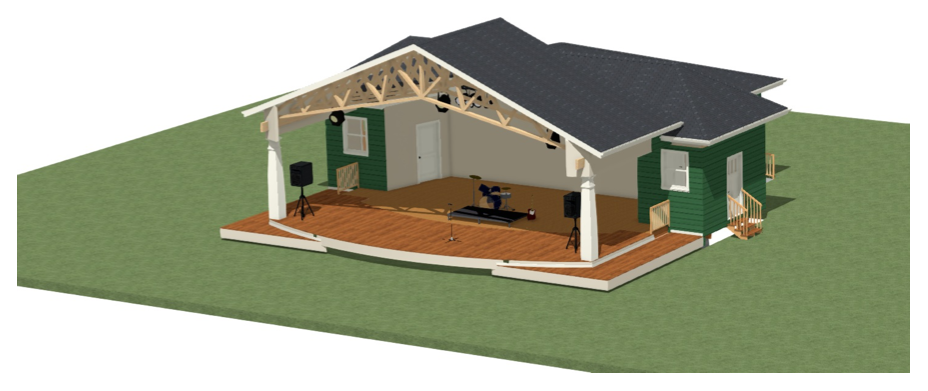 In terms of dimensions, DiMino explained, “The old bandshell is going to be the middle; and then we're putting an addition on the back of it, which will make the staging area for people in the back twice as big; and then we're extending the stage on another remodel, which is going to make it twice as large on the stage end.”