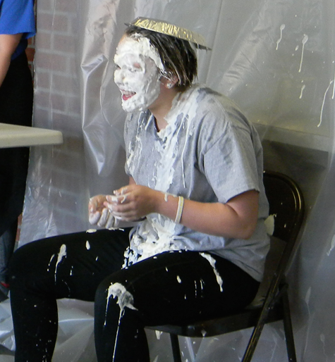 Throughout the morning, students and faculty took their turns with generously filled cream pies thrown at Rayn.