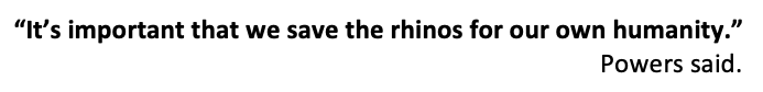 “It’s important that we save the rhinos for our own humanity,” Powers said.
