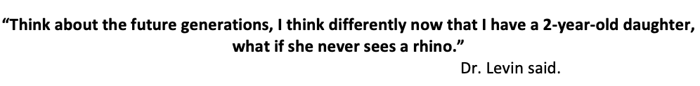“Think about the future generations, I think differently now that I have a 2-year-old daughter, what if she never sees a rhino,” Dr. Levin said.