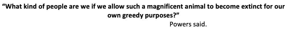 “What kind of people are we if we allow such a magnificent animal to become extinct for our own greedy purposes?” Powers said.