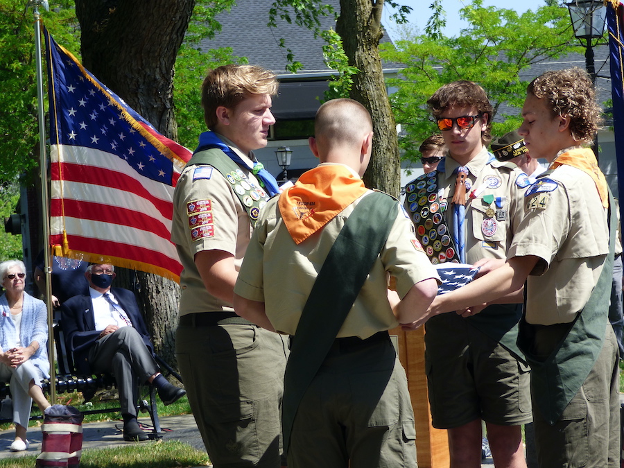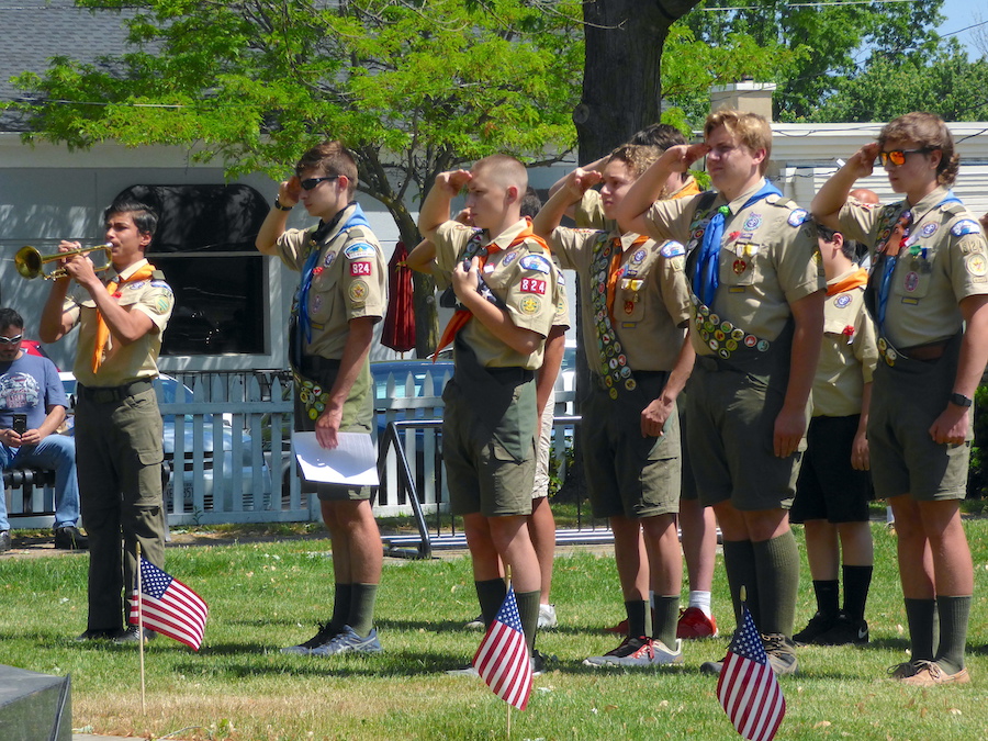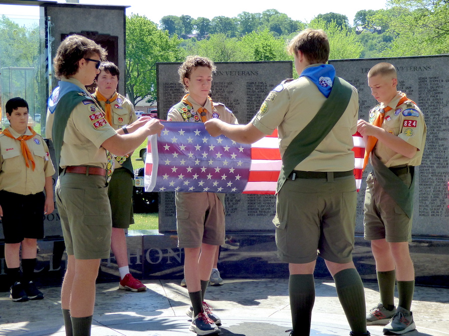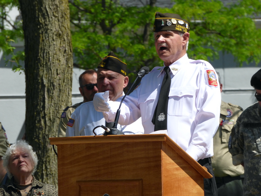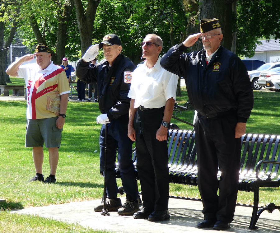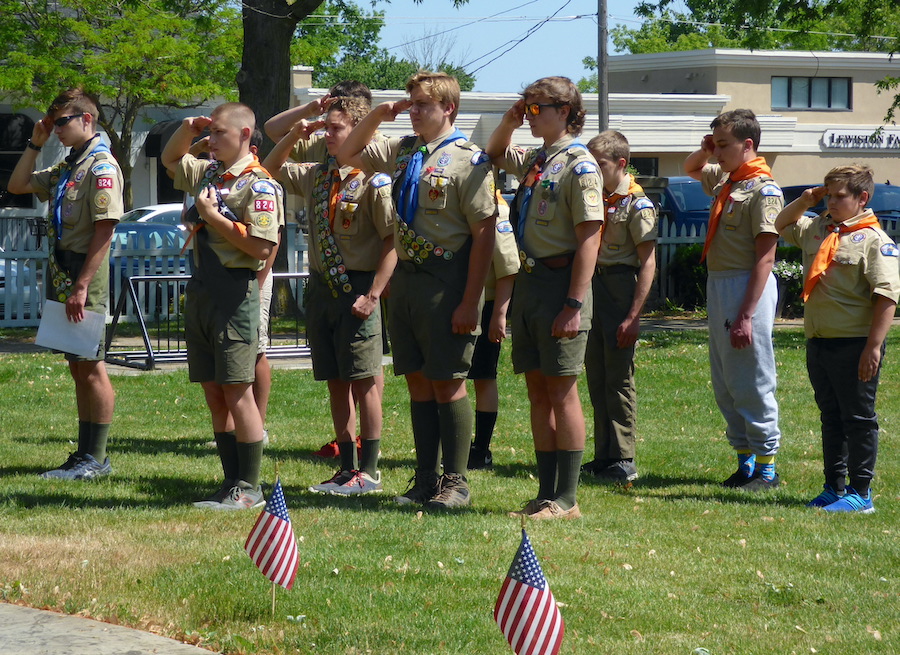 Veterans of Foreign Wars Downriver Post 7487 and American Legion C.C. Kenney Lewiston Post 1083 presented their annual Memorial Day observance Monday at the “Circle of Honor” monument inside Lewiston’s Academy Park. VFW Cmdr. Bill Justyk served as master of ceremonies, while Assemblyman Angelo Morinello was the guest speaker. Scout Troop 824 performed a flag-folding ceremony and patriotic music was performed.