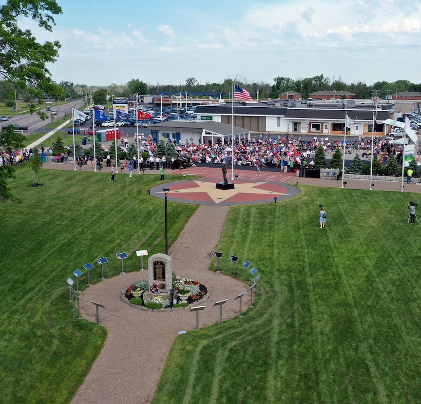 A major effort began by updating the Killed in Action monument at the southern end of the property to include those lives lost in the Vietnam War and Operation Iraq Freedom. Wegrzyn and former Supervisor Mary Cooke led a committee that took those 17 names and found photos and a short biography so their stories could be presented on their own metal and glass statue.