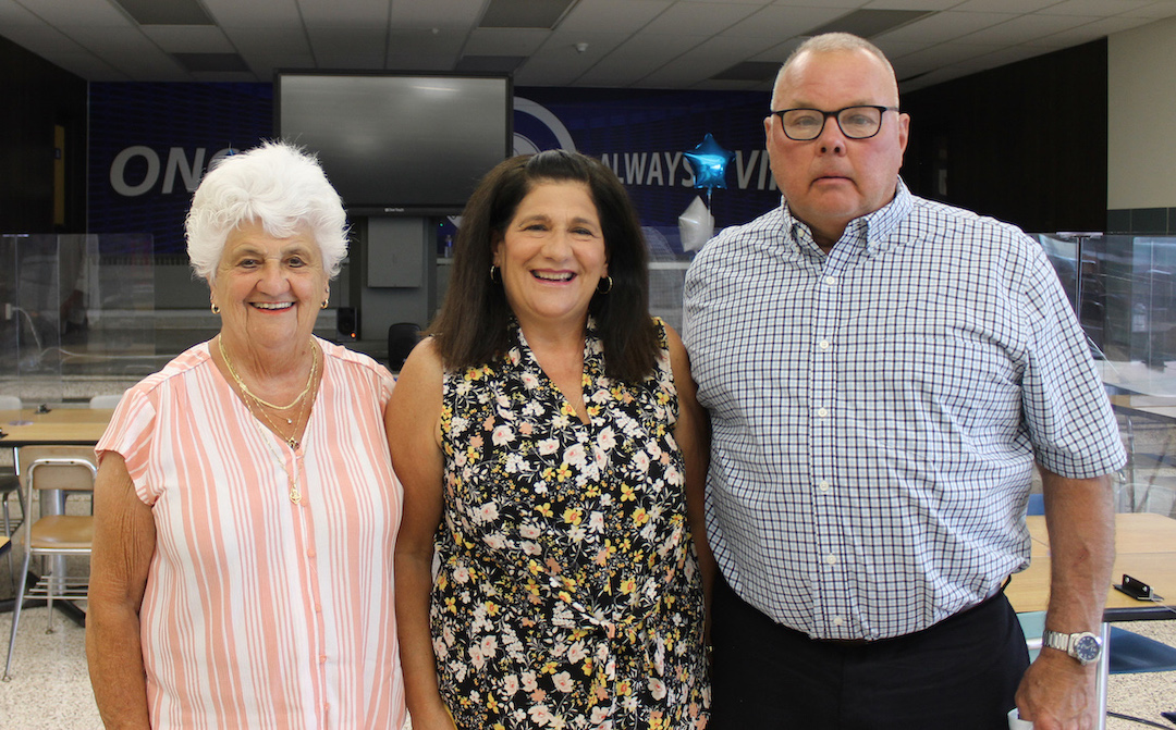 AnneMarie Stewart, center, is retiring after 30 years as a nurse with the Grand Island School District. On the left is her mother, Nancy Samrany, and at right is her husband, Robert. (Photo by Karen Carr Keefe)