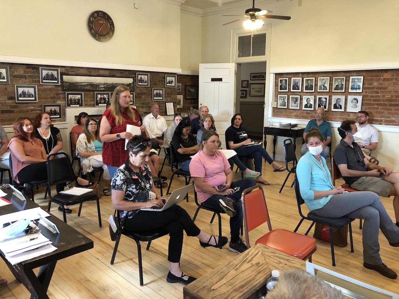 Lewiston Artisan Farmers Market organizer Jamie Symmonds addresses the Village of Lewiston Board of Trustees at Monday’s monthly meeting.