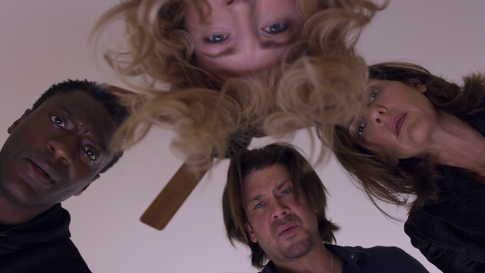 Former cable standout series "Leverage" is returning after a decade off the air in a continuation of TV's favorite rob-from-the-rich-give-to-the-poor storyline. "Leverage: Redemption" premieres July 9 on IMDb TV. Pictured, from left: Noah Wyle (Harry Wilson), Gina Bellman (Sophie Devereaux), Christian Kane (Eliot Spencer), Aldis Hodge (Alec Hardison), Aleyse Shannon (Breanna Casey) and Beth Riesgraf (Parker) on the set of IMDb TV Original Series "Leverage: Redemption." (Amazon Studios photos by Alfonso Bresciani)