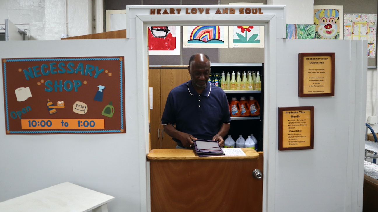 Robert L. Bradley Jr., a longtime Heart, Love & Soul volunteer, and, since January, a board member, helps run the Necessary Shop. Once a month, guests can stop in and get toiletry items and cleaning products. He says the ability to communicate and spend time with guests enables the organization to provide better.