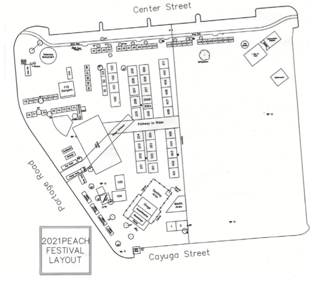 A look at the new configured Peach festival layout at Academy Park, with festival tents and vendors on the left the Amusements of American midway planned on the right. (Art courtesy of Lewiston Kiwanis Club)