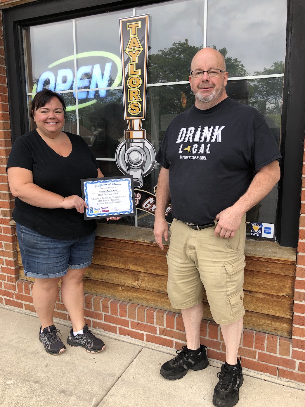 Jeff Taylor and Julie Taylor outside of Taylor’s Tap & Grill.