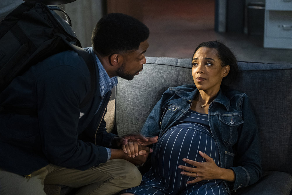 When a story has as much delicious flavor as “Psych,” it doesn’t end. It just takes on a new name. Sort of like Gus. Burton Trout, that is. I mean, Magic Head; err, make that All the Pips In One. He is preparing to be a father in “Psych 3: This Is Gus.” Pictured, from left, are Dulé Hill and Jazmyn Simon (Selene) (Peacock photo by James Dittiger)
