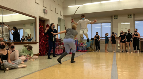 Students rehearse for “The Nutcracker,” hopeful to stage a show similar to past performances. GNBC couldn’t produce the holiday favorite in 2020 due to COVID-19 restrictions. “The Nutcracker” will return to NFHS on Dec. 10-11. (Practice photos by Mark Yerger/stage picture by Joshua Maloni)