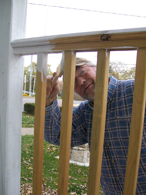 Bruce Sutherland at work on the Niagara River Region Chamber of Commerce office porch.