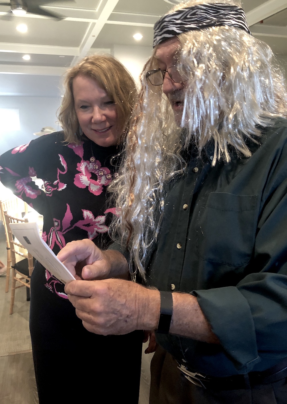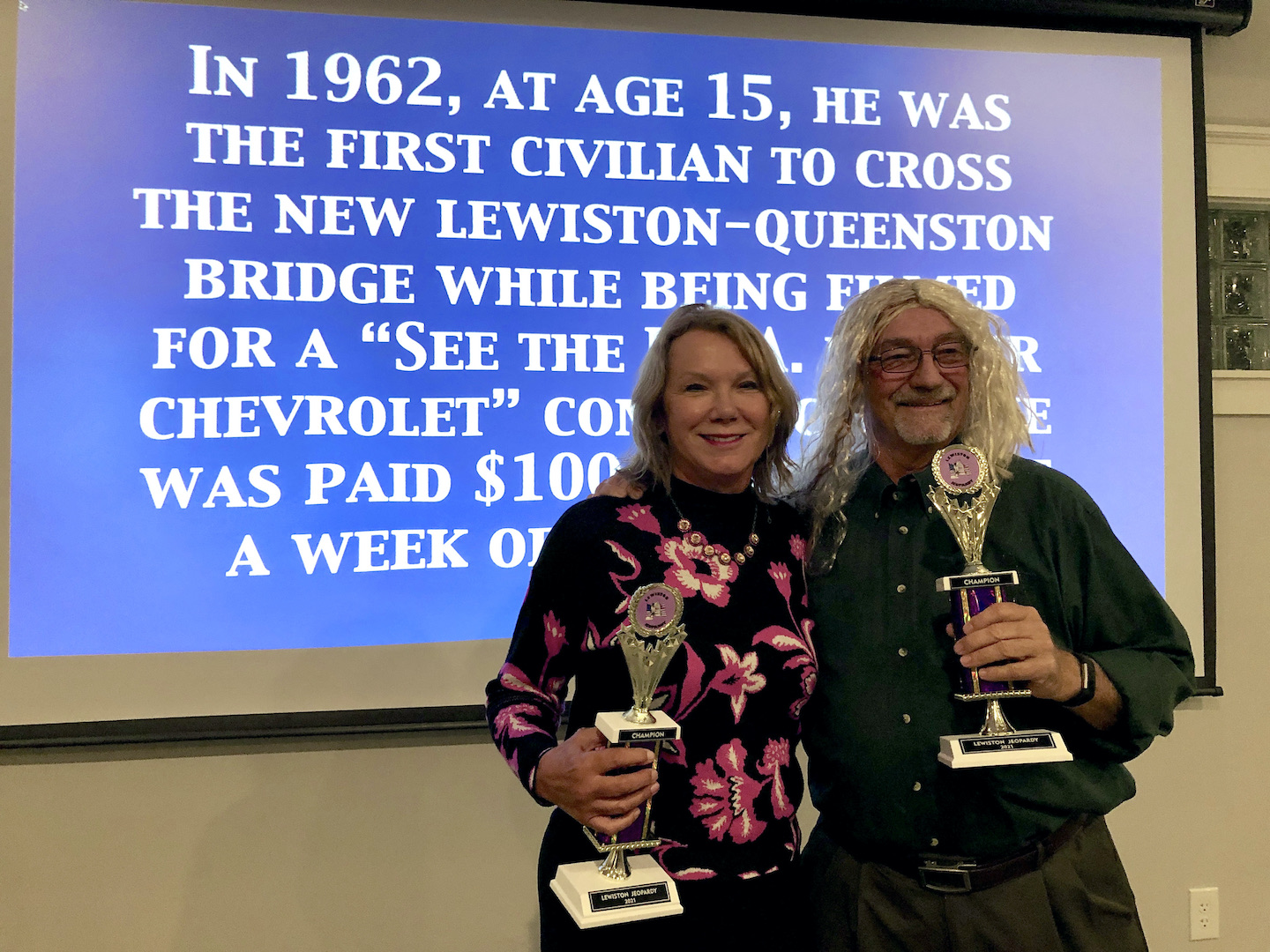 Sandy Blackwell Yates partnered with Sutherland to win the recent HAL fundraiser “Lewiston Jeopardy!” At a party earlier this month – which he attended – she said, “Bruce always puts a smile on my face when I see him! Mostly that is because he always has this incredible smile on his face. I was lucky enough to have him on my ‘Jeopardy!’ team this year with his long, golden, flaxen locks, and his incredible brain power. He helped us to our victory! Once I told Bruce … that Bruce Sutherland is just the most pleasant man. I really don’t know how you do it. You truly make people want to say ‘Hello’ to you and chat with you. You have this incredible way about you and I hope you realize this!”