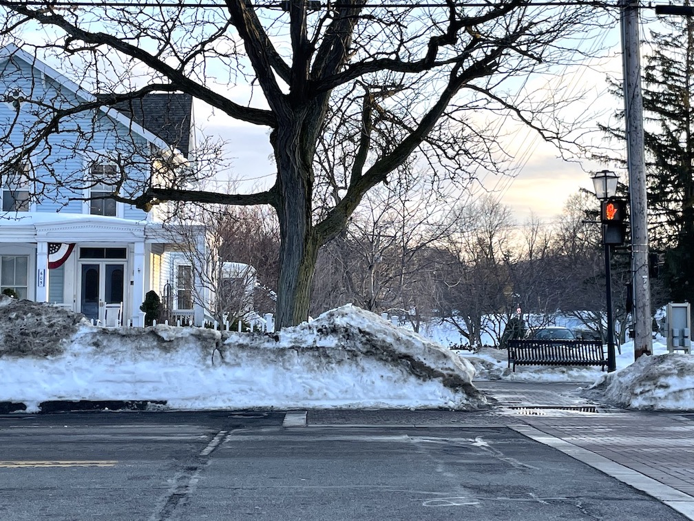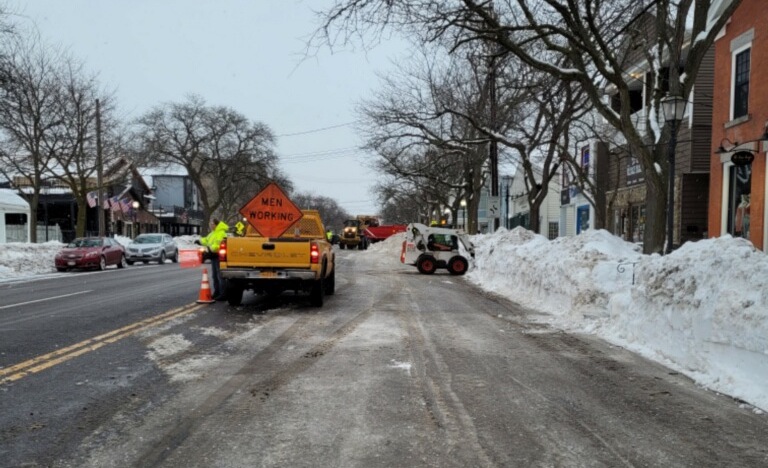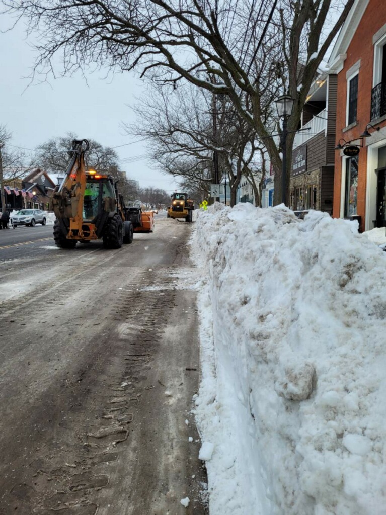 Heavy machinery was spotted along Center Street this week. Department of Public Works Superintendent Larry Wills said his crew teamed with the Town of Lewiston Highway Department to remove snow, allowing for easier parking. About 2 feet of snow fell on Lewiston Jan. 16-17 and, just as residents and businesses were finishing clearing that away, several more inches topped the roadways on Feb. 3. Massive white walls were formed as streets were plowed, making parking a bit of a challenge. (Photos courtesy of the DPW)