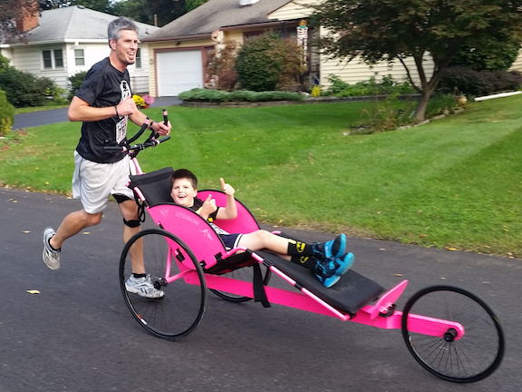 Strang, McElroy said, is the Western New York ambassador for a national group called Ainsley’s Angels. Based in Washington, D.C., Ainsley’s Angels organizes half marathons in memory of Ainsley Rossiter, who was diagnosed with a rare degenerative condition called infantile neuroaxonal dystrophy (INAD) in 2007 shortly before her fourth birthday. Her parents first took her out for a run in her wheelchair in 2008, and she enjoyed running until she passed away in 2014.