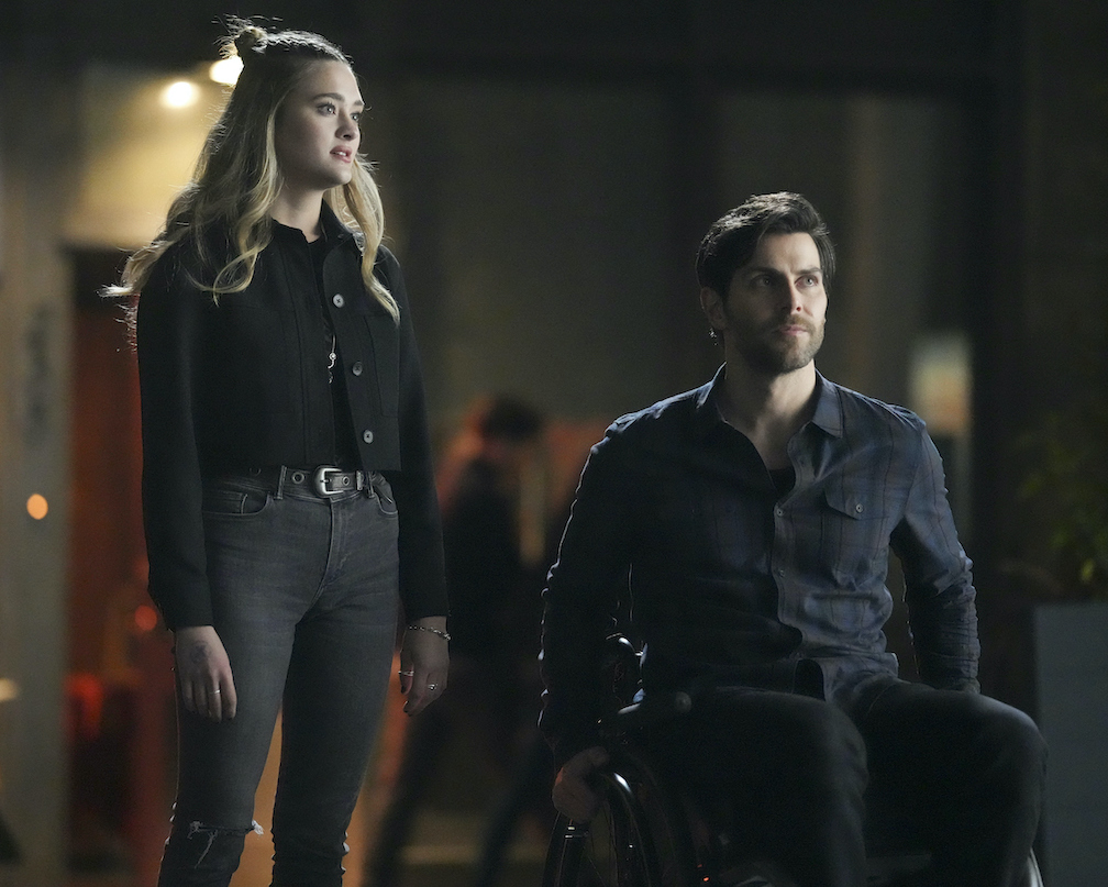 Sophie and Eddie (David Giuntoli) outside a club where she meets some new band friends. (ABC photo by Darko Sikman)