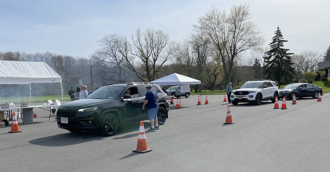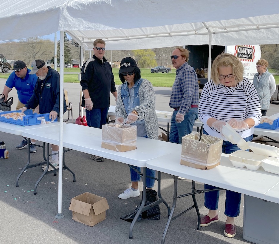 Volunteers with the Historical Association of Lewiston hosted a drive-thru Chiavetta’s chicken barbecue fundraiser on Saturday at the Town of Lewiston Town Hall parking lot. They were joined by elected and local business leaders. Dinners were just about sold-out when these photos were taken.