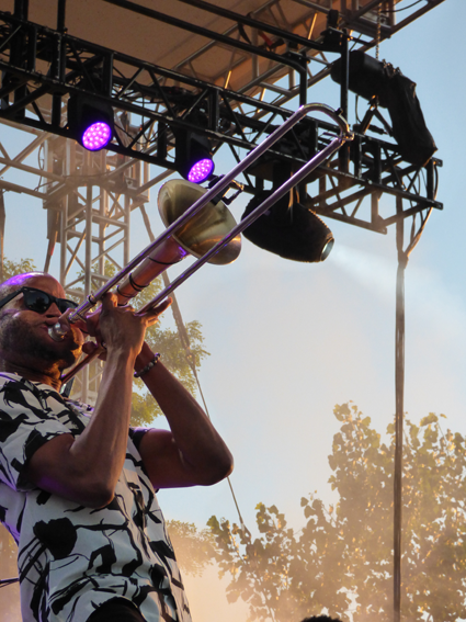 Trombone Shorty brought Orleans Avenue and his “Voodoo Threauxdown” to Artpark’s outdoor amphitheater Tuesday night. The audience delighted in the curated mini-festival – a history of New Orleans music and a vision of where that music is headed in the 21st century – while singing and dancing to the music.