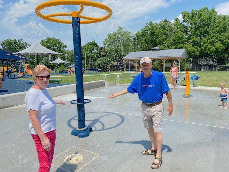 Mayor Anne Welch and Deputy Mayor Vic Eydt pose at the splash pad inside the inclusive playground at Marilyn Toohey Park. The site was popular during the midweek heat wave. (Submitted photos)