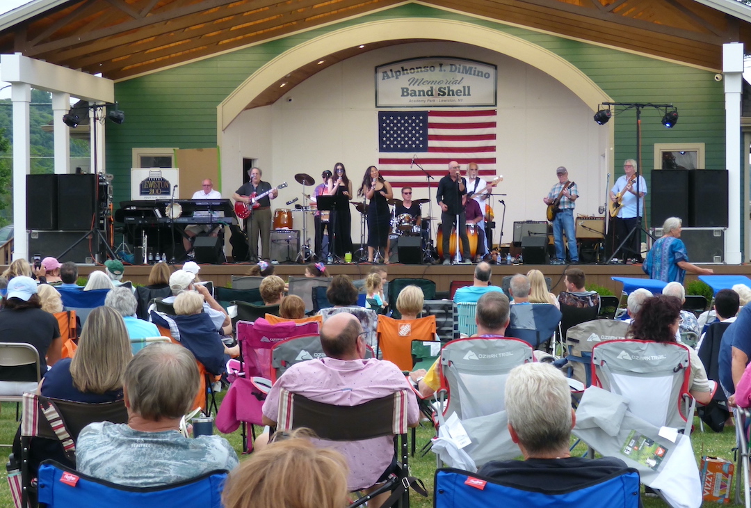 Then, “The Summer of ’69” christened the new Alphonso I. DiMino Memorial Band Shell at Academy Park. Crowds lined the field for the popular Lewiston Council on the Arts concert. Artistic Director Eva Nicklas welcomed the audience.