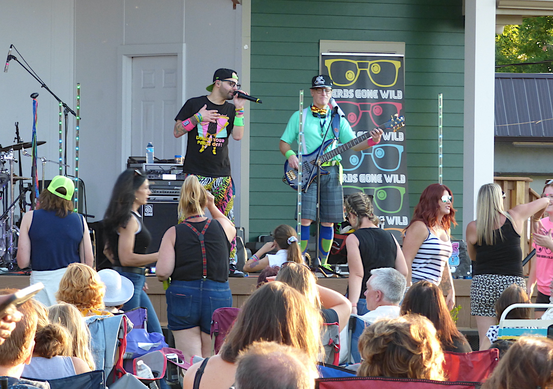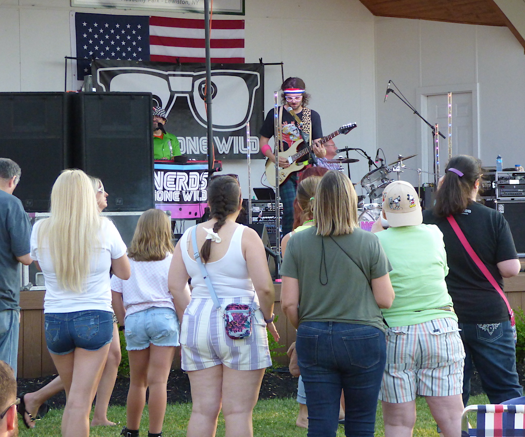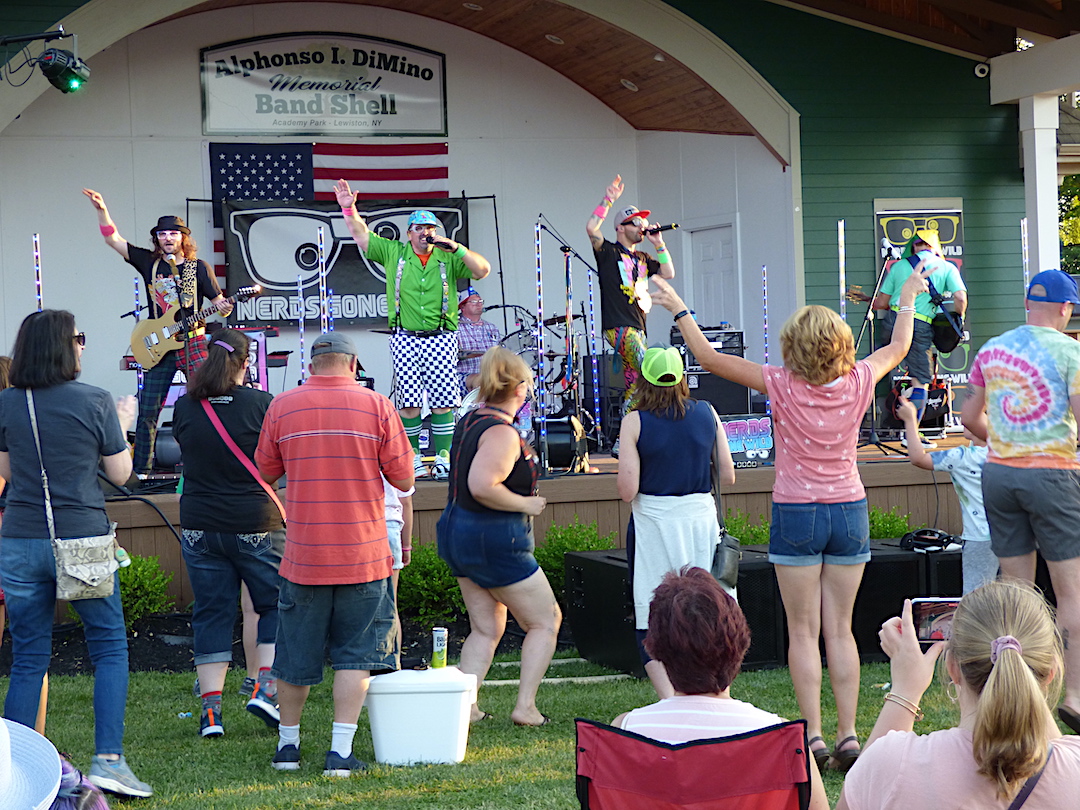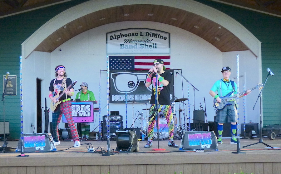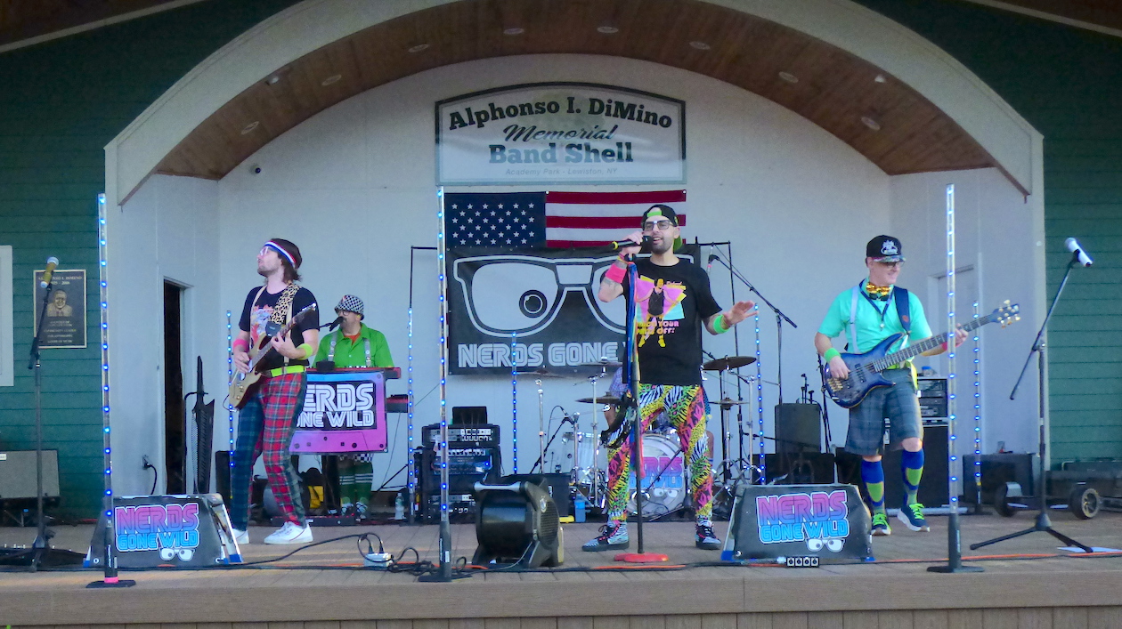 Lewiston’s bicentennial weekend kicked into high gear Saturday night, as preeminent 1980s (and some ’90s) cover band Nerds Gone Wild performed two sets from the Alphonso I. DiMino Memorial Band Shell at Academy Park. The concert featured hit songs from some of the biggest artists of the past 40-plus years – plenty of singing and dancing from the crowd – and “Happy birthday Lewiston” shouts from the stage.