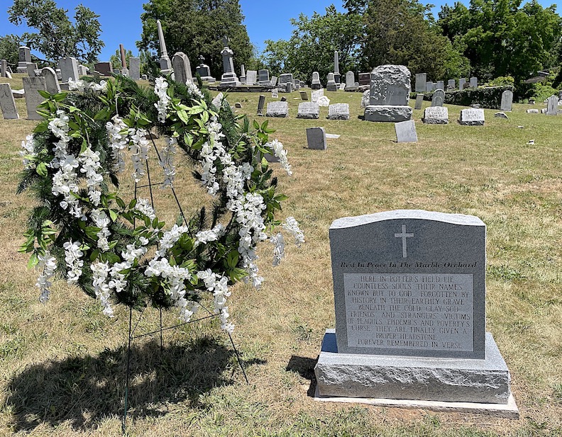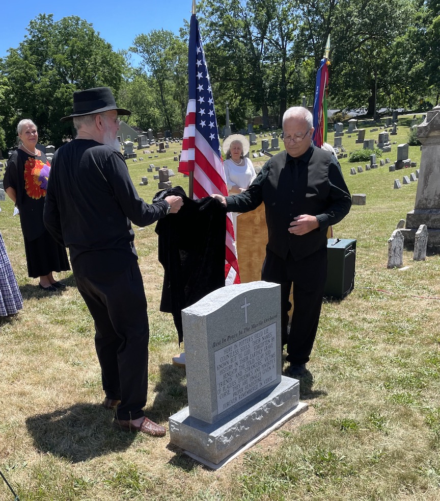 That segued into a dedication ceremony for the potter’s field memorial site that village Historian Russ Piper has been working on for several months. A ceremony was held in the Marble Orchard, with remarks from Piper and members of the Lewiston Council on the Arts.