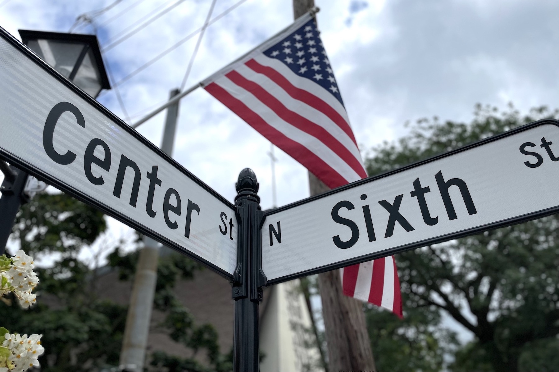 •US Traffic Control installed new street, crosswalk and stop signs along Center Street this week. The faded maroon markers were replaced with black and white versions.