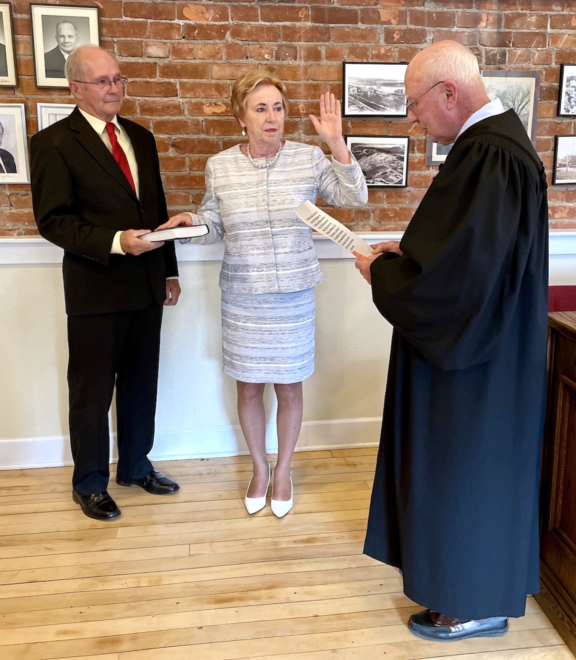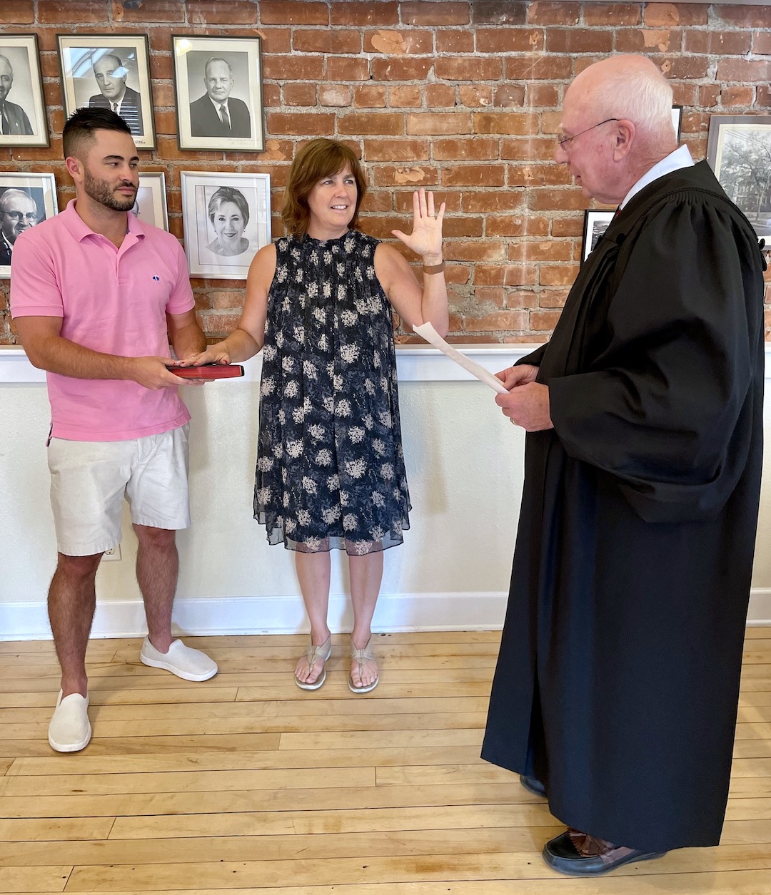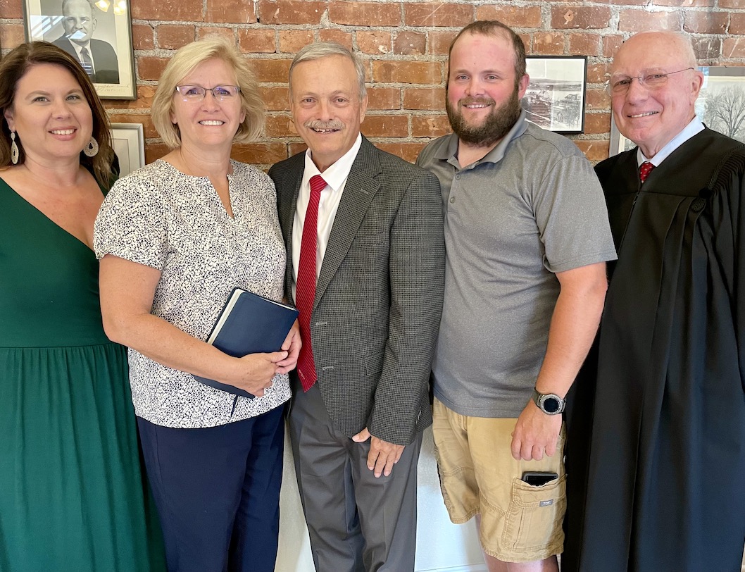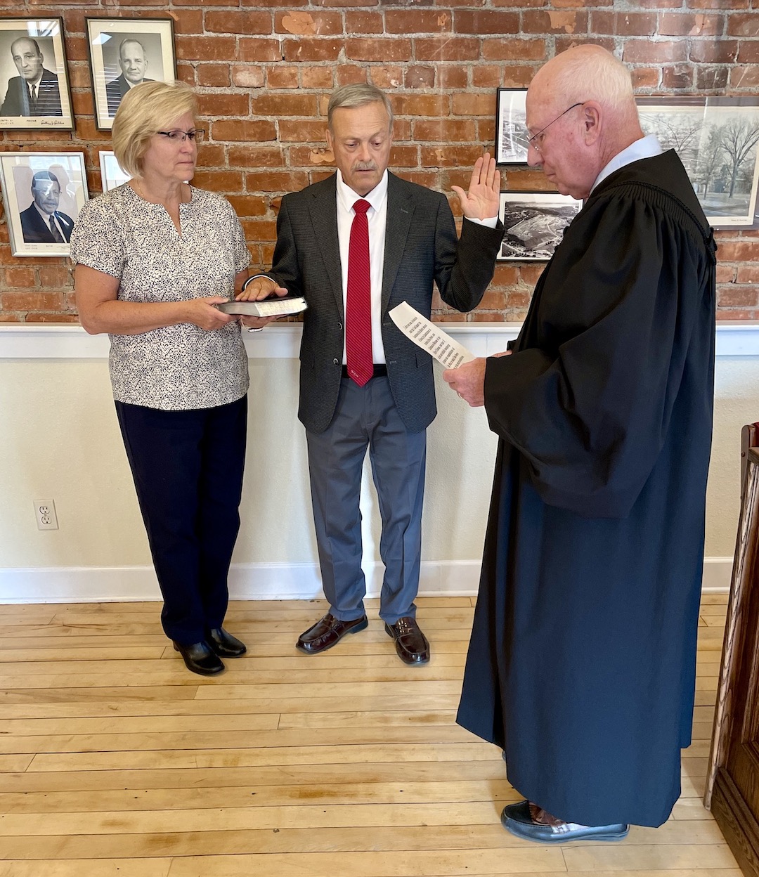 Town of Lewiston Justice Thomas Sheeran administered the oath of office to Village of Lewiston Mayor Anne Welch and trustees Vic Eydt and Tina Coppins. The elected leaders then took photos with family members.