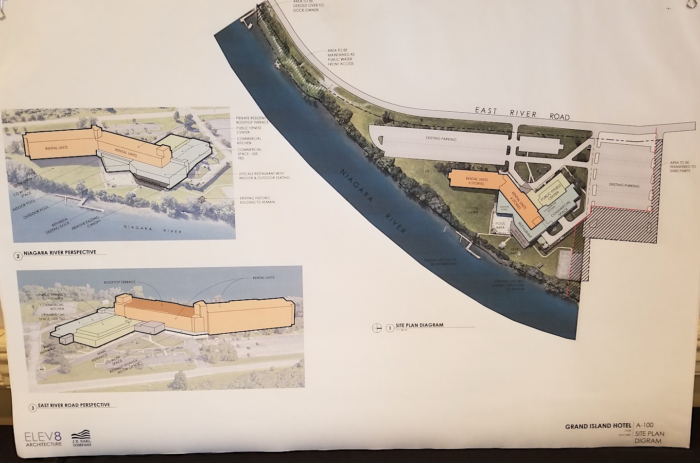 Michael Conroe of Elev8 Architecture in Orchard Park and Justin Earl of JB Earl and Co. of Springville, Utah, visited with roughly 75 residents of the East River neighborhood. Joined by Island native Stephanie Clark, an Elev8 associate, the speakers opened with details on their background and went on to provide visitors a glimpse of what could happen with the hotel property should they acquire it from current owners, listed as the McSam Hotel Group of Great Neck, New York.