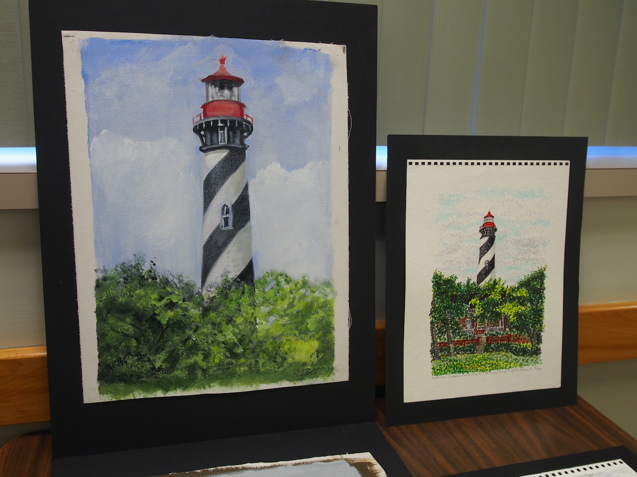 Terry and Dori Klaaren both painted a lighthouse in their own styles.