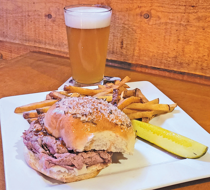 “The roast beef is slow-roasted, sliced thin. And then we do just a quick dip in the as jus, and it goes on a Constanzo roll, because we like to support local.