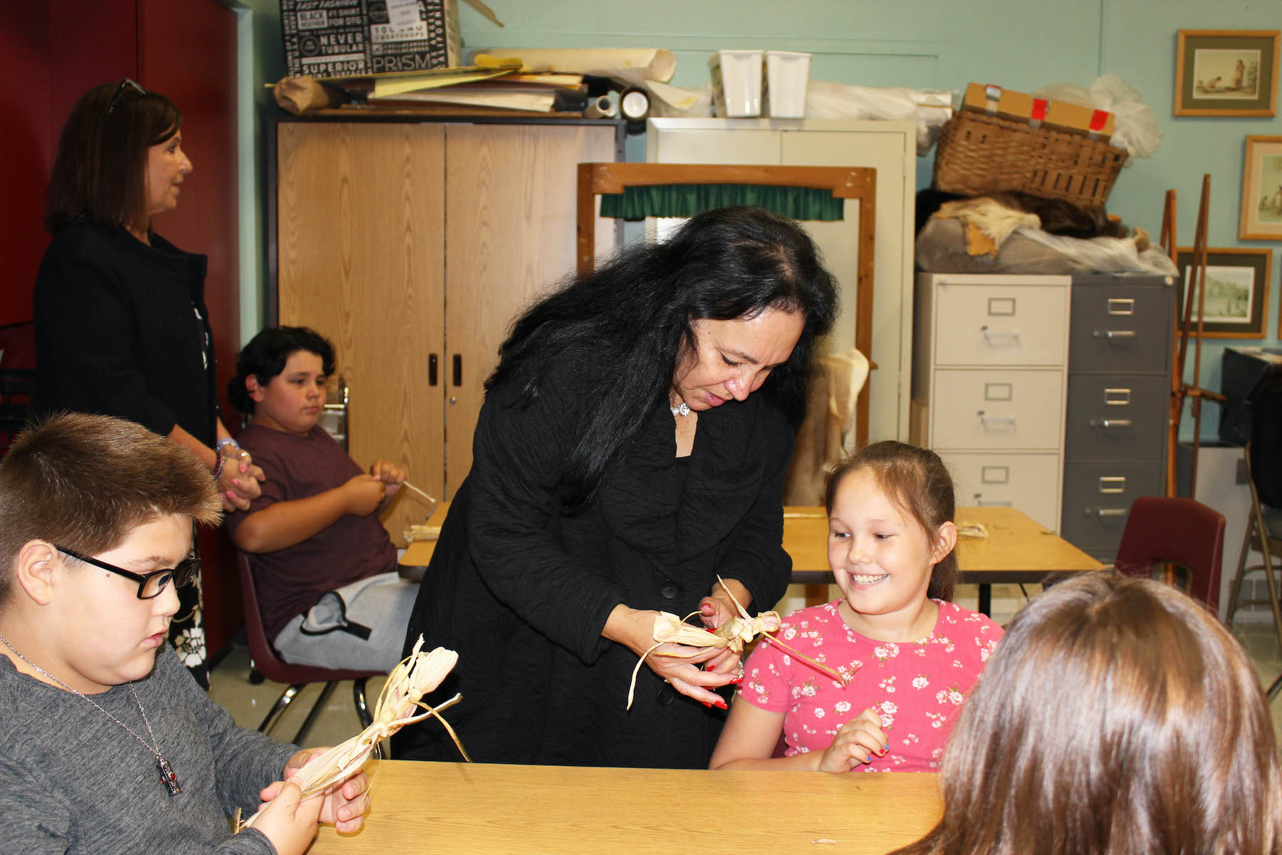Tuscarora Indian School Principal Liz Corieri introduced Commissioner Rosa to her staff and brought the visitors into the classrooms to observe the students and teachers. One of the classrooms Commissioner Rosa visited was the culture class, where teacher Vincent Schiffert was working with students on corn husk dolls. Schiffert and his students told their visitors the story behind the dolls and why they had no faces.