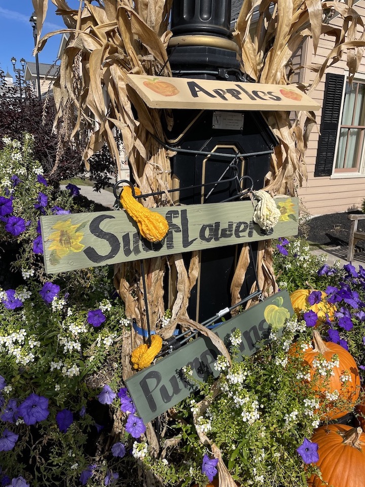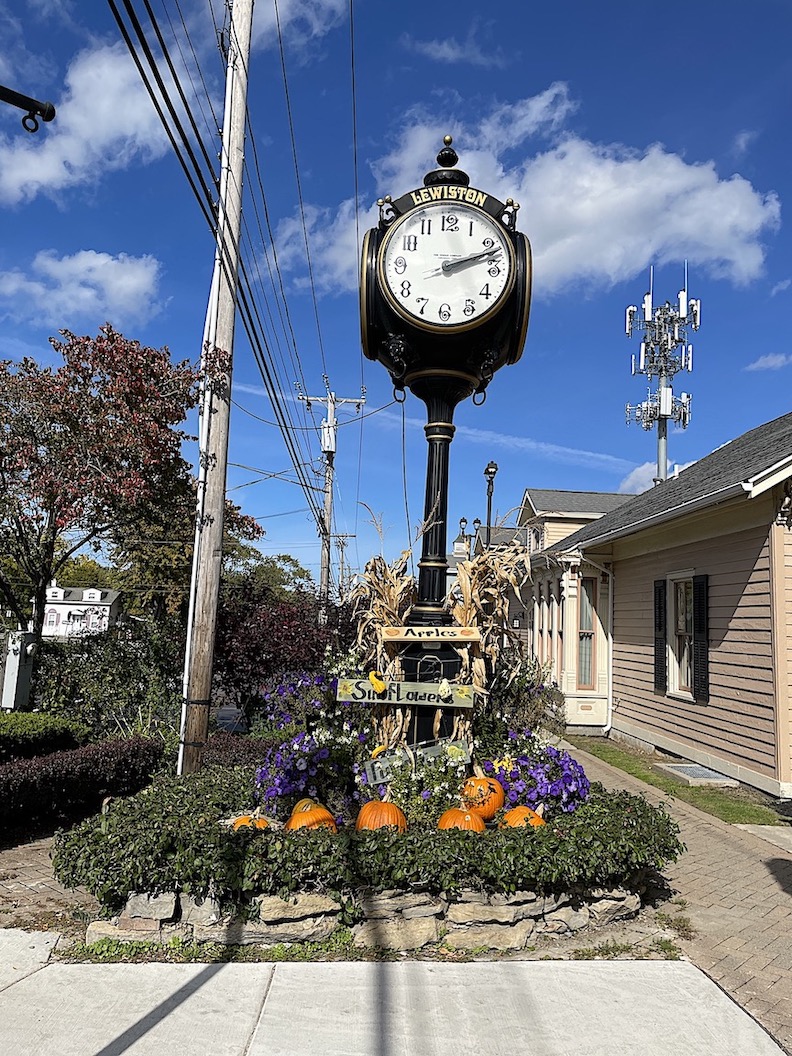 The Vrooman clock at Center and North Fifth streets shows bountiful fall foliage and produce.