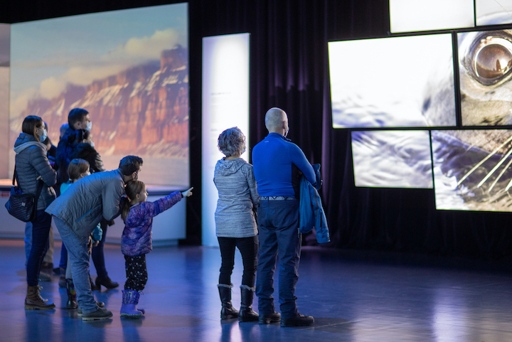 As for what visitors can expect from “Arctic,” the experience is about 45 to 60 minutes long, depending on how invested visitors get in the show. It can, theoretically, be sped through in about six or seven minutes. But if that happens, guests miss the immersive videos that show in 360-degree surround. They forego the exhibit’s only truly interactive experience: dipping their warm arm in water that is the temperature Cyr swam in while collecting the videos and photographs on display.