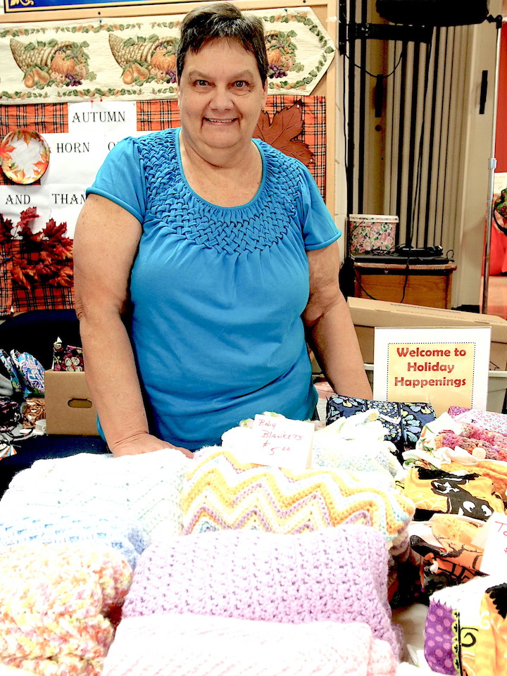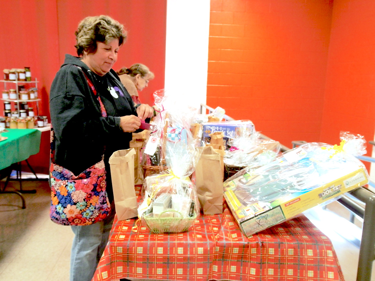 Holiday Happenings, held at the Grand Island Golden Age Center, featured a number of vendors and crafters, who sold such things as notecards, book pillows, jams and jellies, winter squash, soaps, homemade candies, and handmade blankets. In addition, people could buy lunch, prepared by the center’s cook, or they could buy baked goods, prepared by members of the Golden Age Center. Another feature of Holiday Happenings was the basket raffle. Approximately 120 baskets were raffled off in this fundraiser for the Golden Age Center.