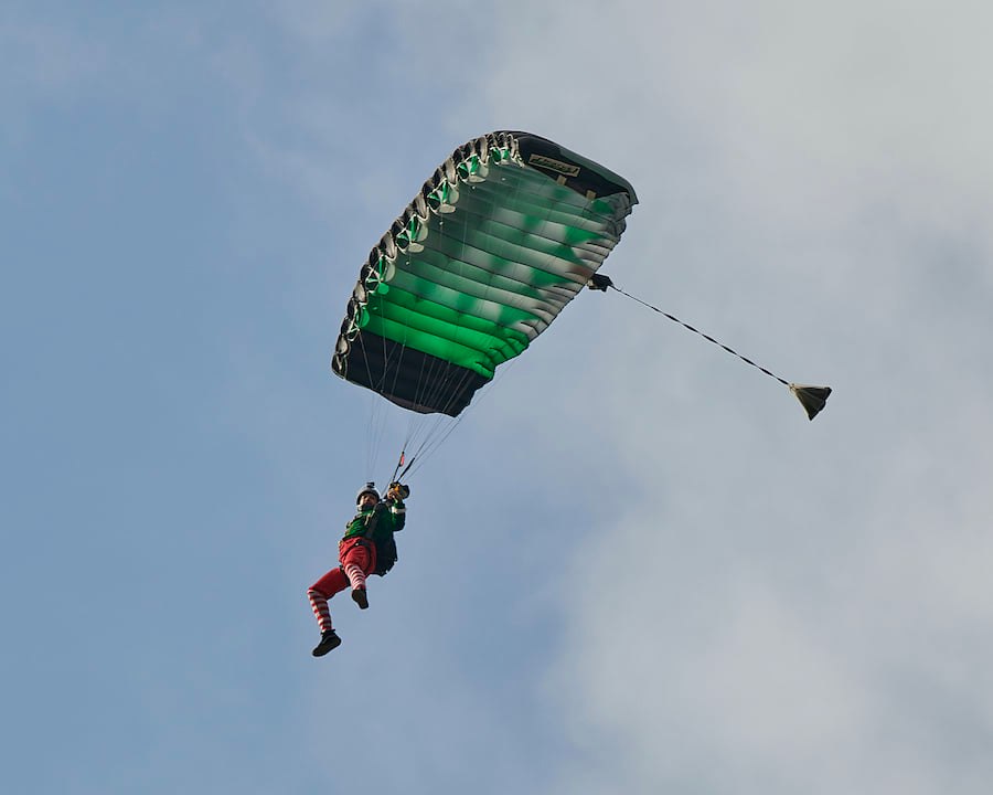 Holiday Elves and Santa's arrival at 11:15 a.m. at Academy Park: Santa’s elves arrive with Skydive the Falls! Watch as they descend and greet Santa! Join us as we promenade down Center Street! This event is weather-permitting.